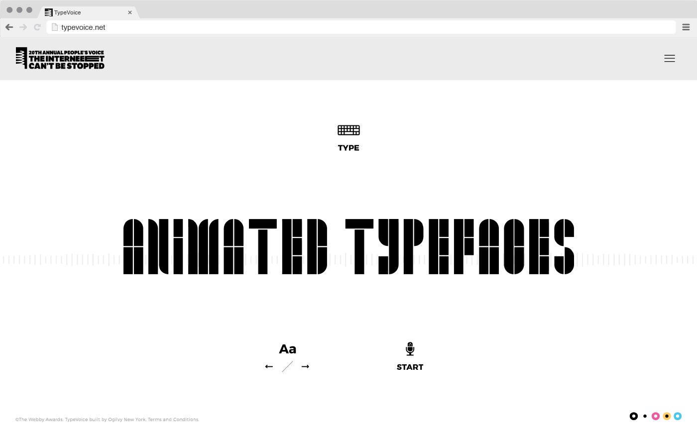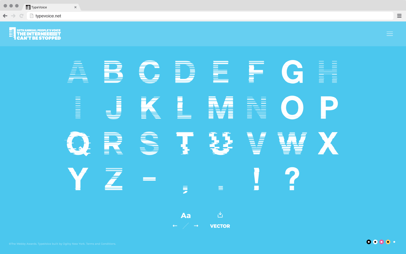 Users can type their name or a message to a friend, speak into their microphone, and watch the characters morph based off of the changing of the volume and pitch of their voice. The letters animate in turn, users can share a gif of their voice-customized typeface, or download an SVG and bring it into their design workflow.